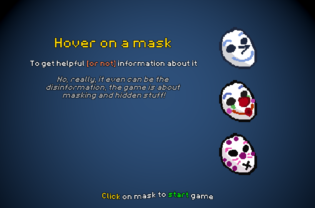 You happen to take a membership in some strange masquerade maze so pick your mask and try to leave the party alive and, additionally, sane.